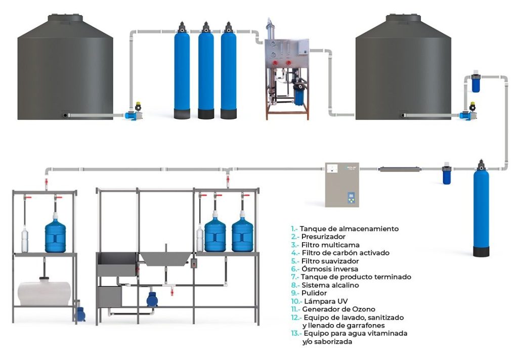 El tratamiento de agua de mesa implica un proceso para asegurar que el agua sea segura para el consumo humano, pasando por etapas como filtración, remoción de minerales, desinfección y, en algunos casos, ajuste de sabor y gasificación.